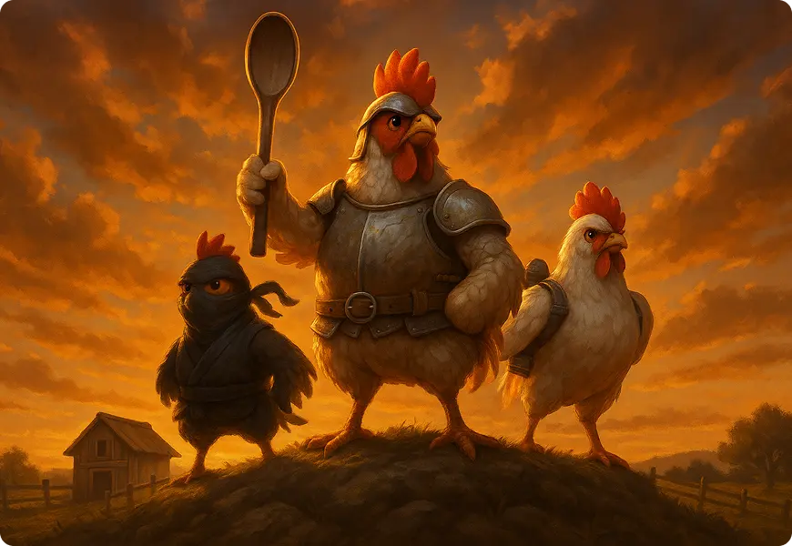 Willkommen bei CHICKEN KNIGHT – das ist nicht nur ein Spiel, sondern dein Pfad zum Bauernhof, auf dem sich jeder Spin in ein kleines Abenteuer verwandelt. Klicke, suche goldene Eier, öffne die Überraschungen der Scheune und genieße den sanften Rhythmus der Walzen – ohne Hektik und Stress. Spiele mutig oder ganz entspannt – der Hof ist rund um die Uhr offen. Spiele kostenlos, ohne Einzahlung und ohne Risiken: entspanne dich, sammle virtuelle Trophäen und habe einfach Freude am Prozess.